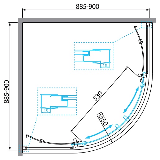 - Поддон: тип R (радиус 550), поддон приобретается отдельно.