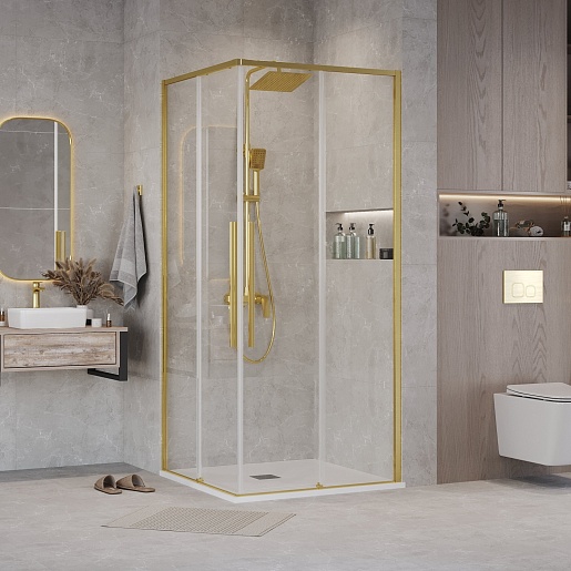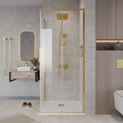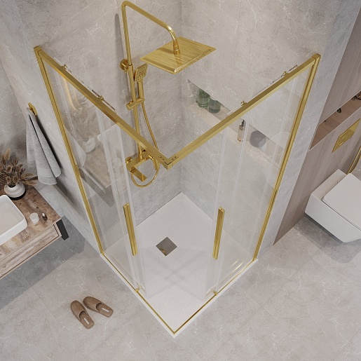 Душевой уголок Grossman Galaxy 100x100x195 профиль золото сатин стекло прозрачное - арт. 300.K33.01.1010.32.00.
