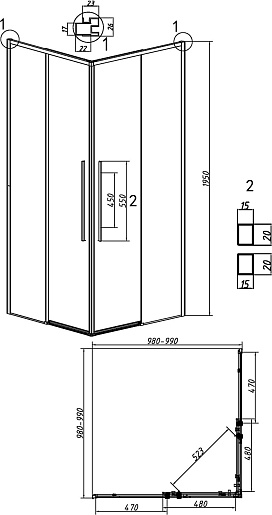 - Размер (ШxГxВ): 100 x 100 x 195 см.