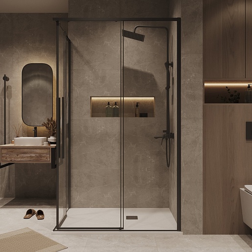 Душевой уголок Grossman Galaxy 110x100x195 профиль черный матовый стекло прозрачное - арт. 300.K33.01.1110.21.00.