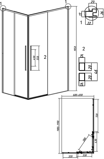 - Материал профиля: анодированный алюминиевый.