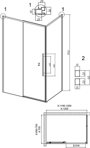 Душевой уголок Grossman Galaxy 120x70x195 профиль графит сатин стекло прозрачное - арт. 120.K33.01.1270.42.00.