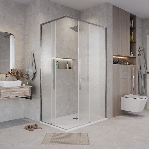 Душевой уголок Grossman Galaxy 90x80x195 профиль хром стекло шиншилла - арт. 300.K33.01.9080.10.02.