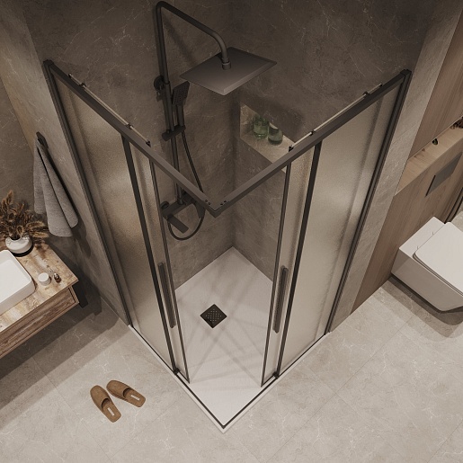Душевой уголок Grossman Galaxy 90x90x195 профиль черный матовый стекло шиншилла - арт. 300.K33.01.9090.21.02.