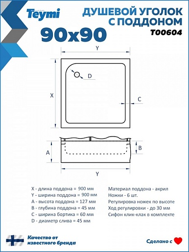 Teymi Душевой уголок Helmi 90x90 с поддоном T00604