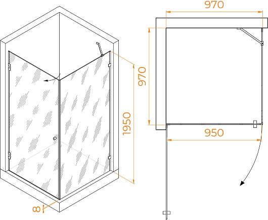 - Размеры с диапазоном регулировок (ШxГ): 970 х 970 мм.