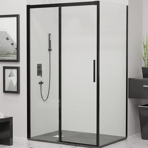 Душевой уголок RGW Leipzig LE-41B (LE-12B + Z-050-2B) 130x100 профиль черный стекло прозрачное - арт. 34124103-014.