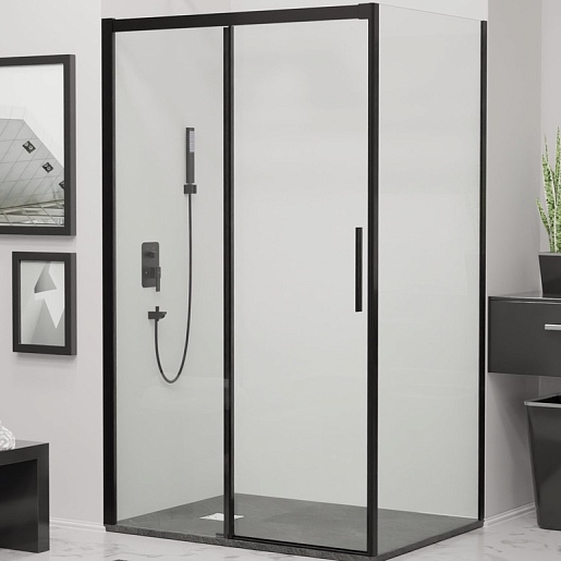 Душевой уголок RGW Leipzig LE-41B (LE-12B + Z-050-2B) 190x100 профиль черный стекло прозрачное - арт. 34124109-014.