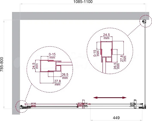 - Стекло 6 мм. C (прозрачное), P (матовое).