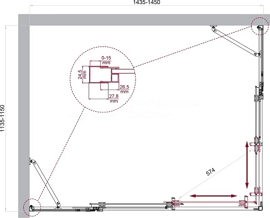 - Душевой уголок прямоугольный.