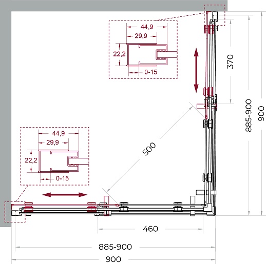 - Регулируемая глубина и ширина: от 88.5 до 90 см.