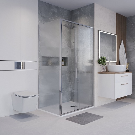 - Материал полотна дверок: закаленное рифленое (шиншилла) стекло.