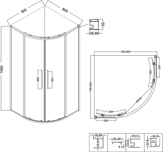 - Размер (ШxГxВ): 80x80x195 см.