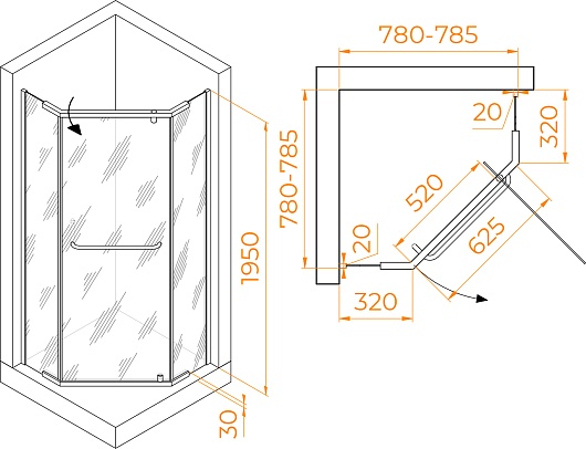 - Размеры с диапазоном регулировок (ГxШ): 780-785 x 780-785 мм.