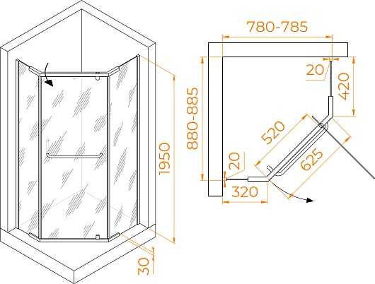 - Размеры с диапазоном регулировок (ГxШ): 780-785 x 880-885 мм.