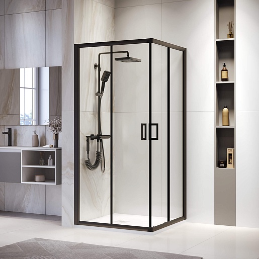 RGW Душевой уголок Passage PA-39B 90x90 профиль черный стекло прозрачное