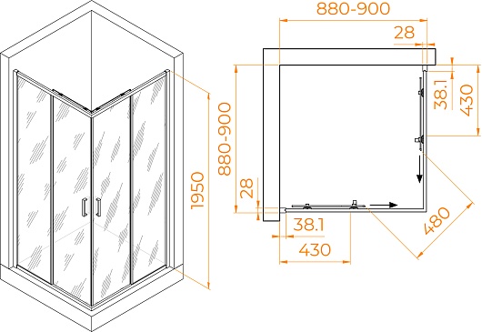 - Размер (ШxГxВ): 90x90x195 см.