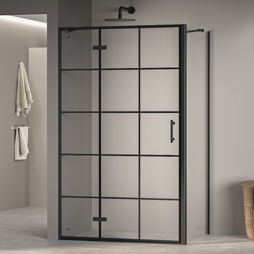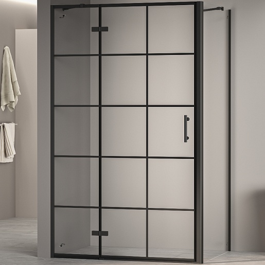 Душевой уголок RGW Passage PA-77B L (PA-07B L + Z-050-2B + держатель O-204B) 120x100 L профиль черный стекло прозрачное с рисунком - арт. 41087720-084L.