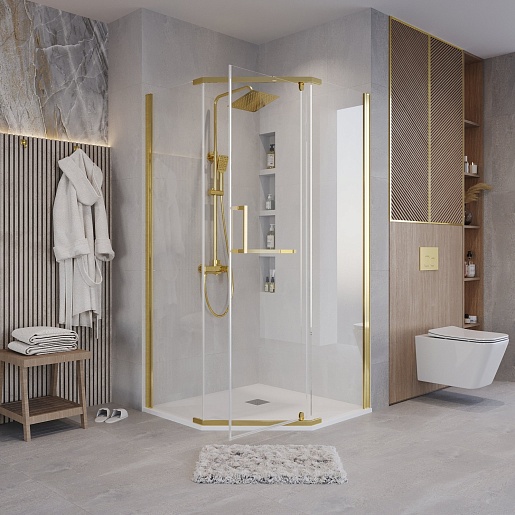 Душевой уголок Grossman Pragma 90x90x195 профиль золото сатин стекло прозрачное - арт. 302.K33.03.9090.32.00.