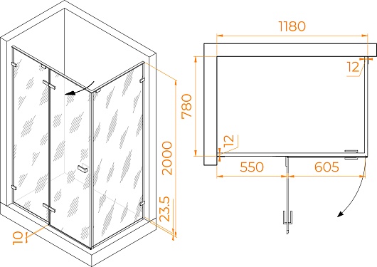 - Стекло: прозрачное, 8 мм.