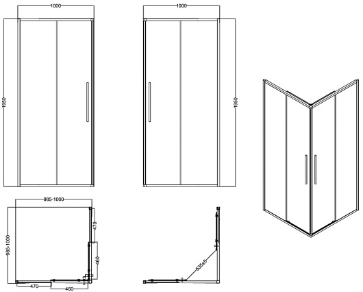 - Размер: 1000x1000x1950 мм.