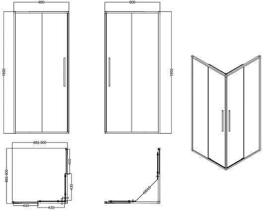 Esbano Душевой уголок Surf 90x90 ESS-90KV-C профиль хром стекло прозрачное