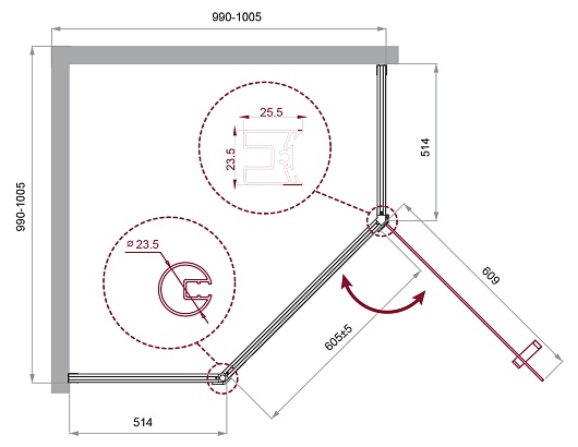 - Стекло 5 мм в двери, 4 мм в неподвижных стенках.