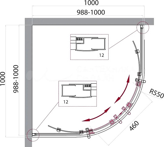 - Поддон: тип R (радиус 550), поддон приобретается отдельно.