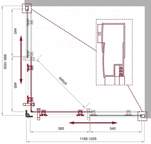 - Стекло 5 мм в дверях, 4 мм в неподвижных стенках.