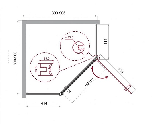 - Стекло 5 мм в двери, 4 мм в неподвижных стенках.
