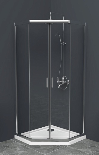 - Стекло 5 мм в дверях, 4 мм в неподвижных стенках. C (прозрачное).