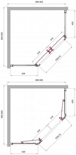 - Стекло 5 мм в дверях, 4 мм в неподвижных стенках. C (прозрачное).