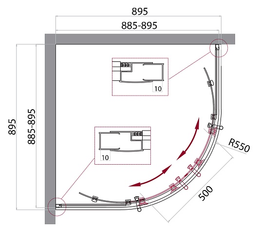 - Поддон: тип R (радиус 550), поддон приобретается отдельно.