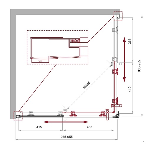 - Стекло 5 мм в дверях, 4 мм в неподвижных стенках.