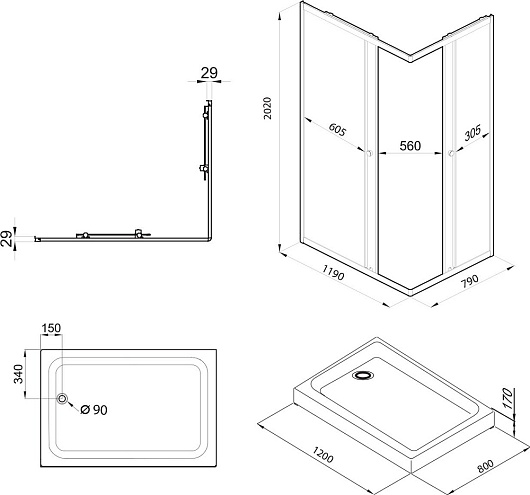 Triton Душевой уголок Вента Блэк 120/80 Щ0000054464