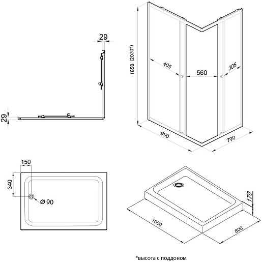 - Поддон в комплекте.