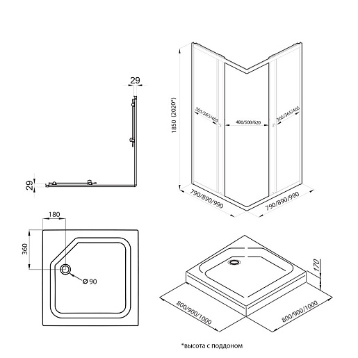 - Поддон в комплекте, включен в стоимость.