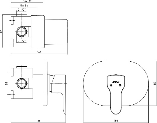 Встраиваемый смеситель для душа E.C.A Star 102152003.