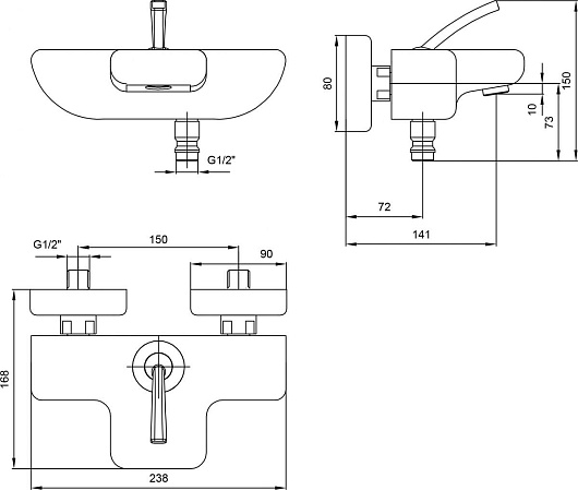 E.C.A. Смеситель для ванны Novita 102102447 хром