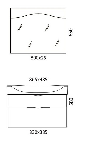 - Зеркало Дольче 85: арт. 2-841-0-S, влагостойкое зеркальное полотно с подсветкой.