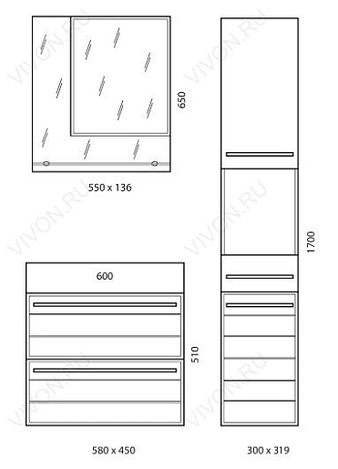 Размеры ШxГxВ: 300x320x1700 мм