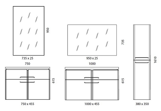 - тумба под раковину Edelform Next 100: выдвижной ящик - 2 шт., нижний ящик имеет дополнительные рейлинги для устойчивости высоких предметов