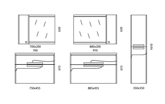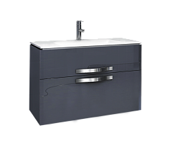 - тумба под раковину Edelform Nota 90 серая: выдвижной ящик - 2 шт., ручка хром - 2 шт., нижний ящик имеет дополнительные рейлинги для устойчивости высоких предметов