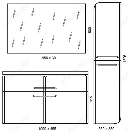 - тумба под раковину Edelform Next 100: выдвижной ящик - 2 шт., нижний ящик имеет дополнительные рейлинги для устойчивости высоких предметов