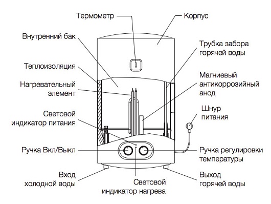 - внутренний бак с покрытием из стеклоэмали, толщина стенок 2 мм