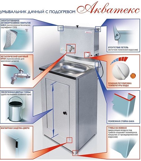 Электромаш Умывальник "Акватекс" с подогревом, нержавеющая мойка, белое золото
