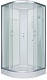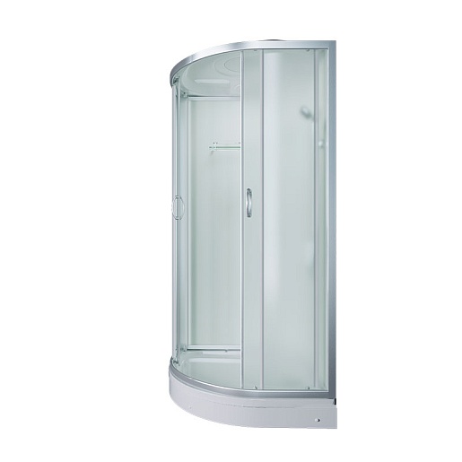 Центральная стойка душевой – пластиковая, две дверцы раздвижного типа оборудованы крепким матовым стеклом в 5 миллиметров толщиной. Из того же стекла изготовлены задние стенки.