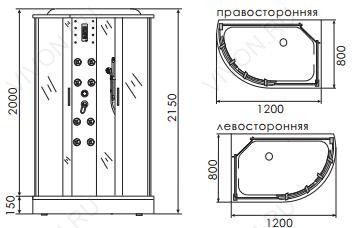 - поддон 15 см полукруглый низкий (направление определяется по гидромассажной стойке в угол).