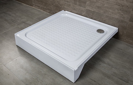 - Передние и пристеночные бортики предотвращают попадание воды на пол;