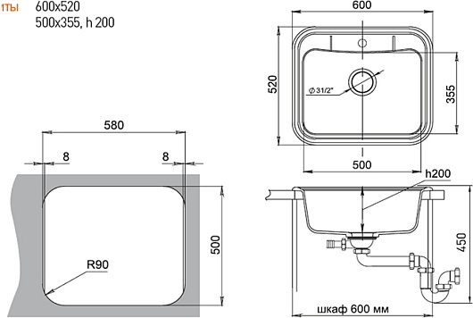 В комплекте: мойка, сифон, шаблон, крепеж.